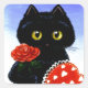 Sticker Carré Saint Valentin Chat noir Art Créationarts
