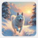 Sticker Carré Samoyed Snowy Mountain Adventure Christmas