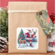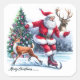 Sticker Carré Santa Claus Enjoys Ice Skating With a Reindeer
