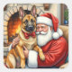 Sticker Carré Santa Claus Holding Belgian Malinois Christmas Art