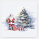 Sticker Carré Santa Clause neige arbre de Noël et présente