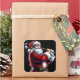 Santa Claus, dressed in his traditional red suit, takes a swing with a golf club while a golf ball hovers in mid-air. The festive atmosphere captures the joy of the holiday season combined with leisure sports, exemplifying a playful side of Santa.