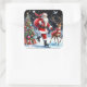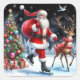 Sticker Carré Santa Skating With a Reindeer by Tree