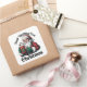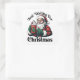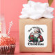 This sticker features a smiling Santa Claus holding a red mug decorated with a Christmas tree and topped with a large swirl of whipped cream. Santa is wearing green gloves and a red suit. The text reads, "Just Waiting For Christmas". The design is set against a clean white background. The design may look real due to the high detail and three-dimensional texture in the artwork.