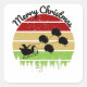 Joyeux Noël de Chomper Designs! Drapeau de père Noël tiré par un troupeau de dindes au-dessus d'une forêt avec un arrière - plan vintage au coucher du soleil.