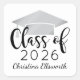 Les autocollants de graduation personnalisés présentent un design personnalisé moderne et élégant avec le nom du diplômé, leur année de classe en script de calligraphie noir tendance, et un casquette gris argenté.