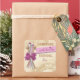 Aiguilles de tricot chic Shabby dans un grand arc rose girlie avec un vieil arrière - plan lacey sur cet autocollant "fait main avec amour" pour tricoter et tricoter.