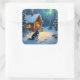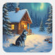 Sticker Carré Siberian Husky Snowy Cabin Christmas Painting