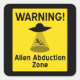 Attention! - Zone d'enlèvement d'Aliens - Signal d'avertissement humour en jaune et noir avec vaisseau spatial et figure de bâton malheureux.