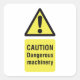 Un panneau jaune qui dit prudence machines dangereuses. Cette conception semble vraiment efficace sur ces Stickers