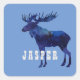 autocollant carré a silhouette d'orignal avec remplissage ciel céleste et texte personnalisable sur arrière - plan bleu clair