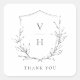 Initiales monogrammes encadrées d'élégantes crêtes et feuilles botaniques illustrés à la main en noir et blanc, simples et luxueux. Grand merci vous préférez les autocollants pour mariage classique moderne, mariage classique simple, élégant mariage de jardin botanique. Voir toutes les pièces correspondantes dans la collection.