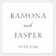 Élégant autocollant de mariage avec un design simple et minimal. Une disposition classique avec vos noms en gros caractères pour une touche moderne à ce style traditionnel. Ce design noir et blanc peut être modifié à n'importe quelle couleur que vous choisissez dans l'outil d'édition de conception. Ces autocollants personnalisés sont parfaits pour une suite de faire-part de mariage ou des faveurs de mariage.