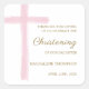 Sticker Carré Simple Pink Cross Christening Baptism Thank You