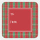 Sticker Carré Simple Plaid Holiday Rouge et vert de