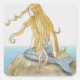 Sticker Carré Sirène blonde se reposant sur la roche de mer, vue