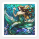 Sticker Carré Sirène en verre tendu admirant une fleur