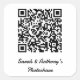 Votre code QR unique et votre texte personnalisé mettent en évidence ces autocollants carrés conçus pour le partage de photos mariages entre les invités.
