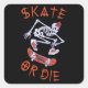 Sticker Carré Skate ou die Skeleton Skateboarder