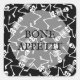 Skeletons sur un arrière - plan noir et BONE APPÉTIT en lettres chic, ces autocollants sont amusants pour vos invitations à la fête d'Halloween ou les faveurs de fête. CORRESPONDRE des articles dans notre magasin.