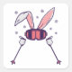 Sticker Carré Ski Rabbit avec bâtons de ski et lunettes de ski