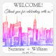 Le skyline de la ville de New York est un tableau aquarelle original de l'artiste Monika Howarth Wedding favorise les autocollants. Les gratte-ciel de New York offrent un panorama sur la Statue de la Liberté, le pont Brooklyn, l'Empire State Building et les gratte-ciel. Un tableau rose avec typographie noire. Personnalisez-le avec vos détails.