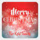 Salutations élevées avec notre autocollant de Noël personnalisable. Un dégradé rouge et bleu présente des flocons de neige, des étoiles et des effets bokeh, tandis que "Joyeux Noël" en cursive ajoute de l'élégance. Personnalisez le texte inférieur avec votre nom de famille ou votre message. Cadre blanc, parfait pour les cartes de fin de année ou les cadeaux. 🎄 🎁