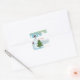 Cet autocollant comporte un bonhomme de neige debout près d'un pin dans une tempête de neige et le texte "À" et "De" afin qu'il puisse être utilisé comme étiquette cadeau.
