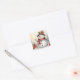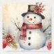 Un joyeux bonhomme de neige en chapeau noir et foulard rouge, debout dans un champ de neige, crée un bel et charmant autocollant de Noël à l'ancienne.