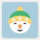 Sticker Carré Snowman de Noël en Casquette vert sur bleu clair