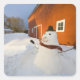 Sticker Carré Snowman devant la grange rouge à Columbia Falls
