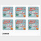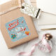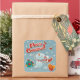 Décorez votre maison ce Noël avec notre sticker carré bonhomme de neige mignon avec cadeau de Noël, arbre de Noël & oiseaux sur flocons arrière - plan. Parfait pour vos cadeaux de Noël et vos enveloppes