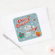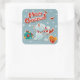 Sticker Carré Snowman mignon avec cadeaux, sapin de Noël & oisea