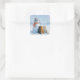 Sticker Carré Snowman With Three Cats In a Snowy Field