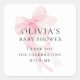 Soft Pink Bow Thank You Baby Shower. Easily personalise the text to your details. A coquette pink bow is tinted in the background with the words overlaid on top.