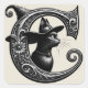 Sticker Carré Sorcière Chat Noir Lettre C Initiale Personnalisée