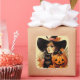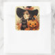Sticker Carré Sorcière d'Halloween rétro et Chat noir Éffrayant