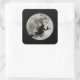 Sticker Carré Sorcière volante avec une lune brillante derrière