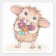 Sticker Carré Souris avec Bouquet de fleurs