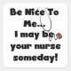 T-shirts, tasses, cartes, autocollants, boutons, sacs, et autres vêtements et cadeaux de soins infirmiers avec un stéthoscope et un texte qui dit "Sois gentil avec moi...Je pourrais être votre infirmière un jour!"