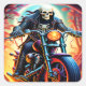 un squelette Traversant la grotte de feu. entrant dans le tunnel Enchanted.Il a un vélo trébuché.Il a un pantalon en cuir noir et des bottes de moto Et une veste en cuir noir avec un emblème osseux design comme un design sur la tenue de motard.Il brillait éthérée de son environnement.Avec la lune qui monte derrière lui. La brume monte du feu autour de lui. Dans la nuit sombre, il s'écarte avec des étoiles de nuit au-dessus.
