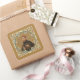Saint Pierre Claver (1580-1654) était un prêtre et missionnaire jésuite espagnol. En 1610, Saint-Pierre se porta volontaire pour servir dans le Nouveau Royaume de Grenade dans les Amériques, qui englobe aujourd'hui le Panama, la Colombie et le Venezuela. Il y a travaillé pendant quarante ans à la gestion d'esclaves à leur arrivée à Cartagena, une plaque tournante du commerce transatlantique des esclaves, et dans les plantations de la campagne voisine. Ses efforts inlassables non seulement pour convertir les esclaves au catholicisme en prêchant le Christ crucifié, mais pour améliorer leurs souffrances lui ont valu l'épithète "Esclave des Africains". + Ici, Saint-Pierre est montré vêtu d'une robe jésuite, une chaussette noire et une cape collée. Il tient une simple croix de bois brun et une couronne d'épines, symboles de Jésus comme "un homme de tristesse et familier avec le chagrin" (Ésaïe 53:3). L'image est enfermée dans un cadre intérieur qui rappelle une fenêtre gothique à huit pétales de rose (ou de roue); les coins du cadre extérieur simple et carré sont remplis de charbons héraldiques. + Saint Pierre Claver meurt le 8 septembre 1654 de causes naturelles après une longue maladie. Il est le patron de la justice inter-raciale, des Afro-Américains, des missions africaines, des esclaves et de la République de Colombie. + Fête : 9 septembre + Crédit image (BK 058) : Image antique de S[Saint] Petrus [Peter] Claver, S.J., publiée initialement dans la chromolithographie par B. Kühlen, Mönchengladbach, Allemagne, série jésuite non numérotée, fin 19ème siècle, de la collection privée du designer de l'épopée religieuse.