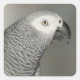 Portrait d’un Congo beautiful African Grey parrot on a gray background. She has pretty scalloped grey feathers and a black beak. Scientific name is Psittacus erithacus.