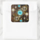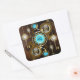 Turquoise lenses with antique watch with brass gears and golden keys on rusty, brown background. Steampunk style.