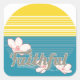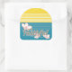 Partagez votre foi avec cet autocollant du soleil réfléchissant sur l'eau et le mot "Fidèle" encastré dans les fleurs.