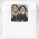 Ces autocollants sont munis de récupérateurs dorés habillés dans le style gothique avec des vêtements noirs, des colliers et des chevilles pointus, et des cheveux noirs.