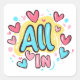 Faites une déclaration audacieuse avec nos Stickers "All In" de style Graffiti ! Dotés d'un lettrage dynamique d'inspiration street-art, ces autocollants sont parfaits pour ceux qui s'intéressent à leurs passions, à leurs objectifs et à leur agitation quotidienne. Express Yourself - Que vous soyez entrepreneur, artiste ou chasseur de rêves, cet autocollant est un rappel quotidien de rester engagé et de tout entrer. Stick it. Possède-le. Allez-y !