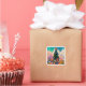 Beaux stickers d'arbre de Noël étiquette Alphonse Mucha aquarelle style coloré, grees, orange, bleu, rose.