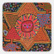 Del Sol, soleil, journée ensoleillée, soleil du sud-ouest, soleil souriant, Virginia Vivier, Art folk vagabond, art folk tribal, mola de Panama, mola indienne Kuna, mola del sol, mola soleil, rouge noir jaune, orange bleu vert, décoration boho, art indépendant.
