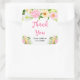 This beautiful and elegant wedding thank you sticker features watercolor pink, yellow and white flowers with foliage on a gold geometric frame. The text combines handwritten script and serif fonts for a stylish and modern look. This is perfect for a spring or summer rustic wedding.